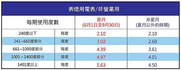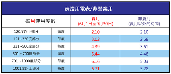 「住宅用電如果在1~5月及10~12月每期(2個月)電費在2,875元以下、在6~9月中,每次繳電費在3,265元以下的用戶,完全不會受到這次電價調整方案的影響。而每月用電量超過500度的用戶,也只有超過500度以上的部分才會受到影響。」