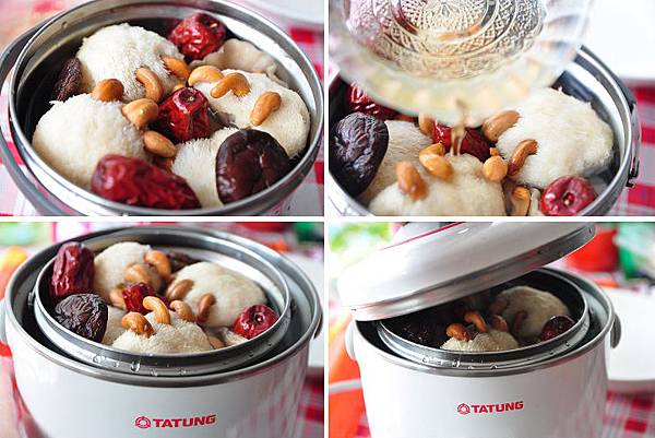 1.備料如圖~ 雞腿、猴頭菇 、鮑魚菇、乾香菇(沖洗後泡溫熱水軟化)、大紅棗、腰果等。
