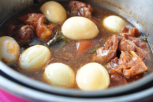 3.另外準備幾個水煮蛋,直接放入滷好的鍋中,蓋上鍋蓋再悶一下,等到要食用時就會入味囉!