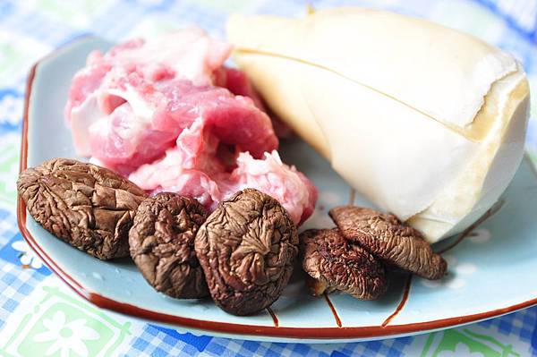1. 準備小排、鮮筍、香菇;小排用滾水川燙、香菇泡溫熱水軟化切絲、鮮筍可隨意切小塊狀或條狀