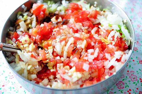 1. 蕃茄、洋蔥、芹菜、青蔥、香菇切細末備用
