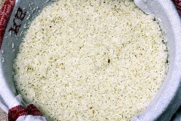 1. 將糯米洗淨泡水3小時後,瀝乾水份,接著放入鋪有一層紗布的大同電鍋蒸籠中