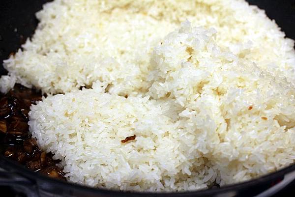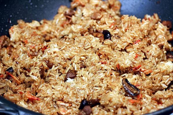 4. 將蒸好的糯米與適量的香菇肉燥拌勻(可自行調整鹹度)