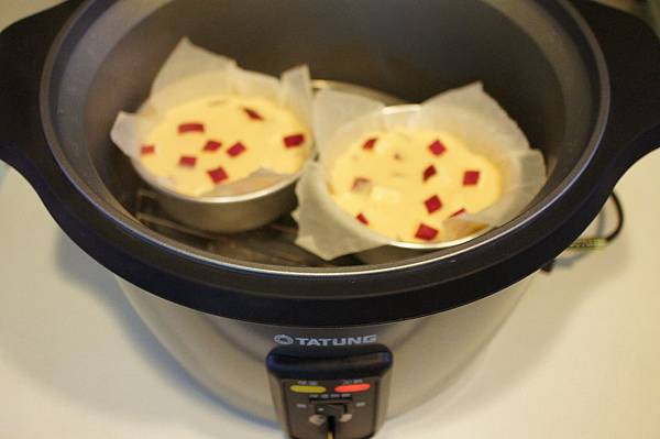 8. 烤皿放入預熱好的電鍋(鍋蓋邊緣冒出蒸氣即預熱完成),待按鈕彈起就OK了