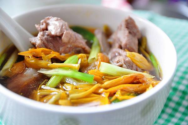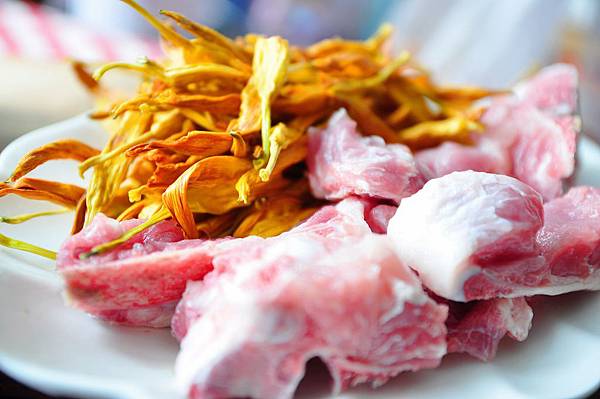 1. 金針花用溫水略泡約6分鐘,再稍微沖洗,豬小排以熱水沖淋數遍