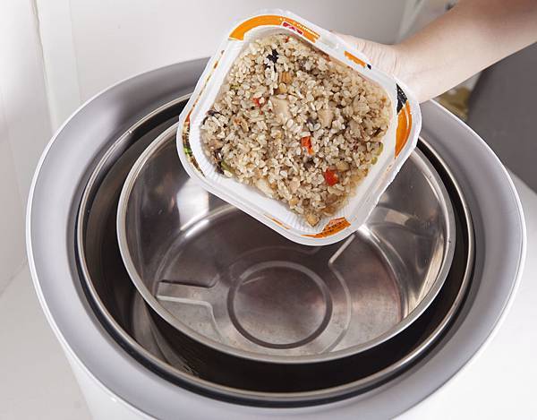 2.將鹹魚雞粒炒飯解凍後放入AI內鍋中