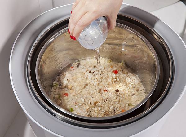 3.加入2杯水(量米杯),外鍋放約0.8杯水