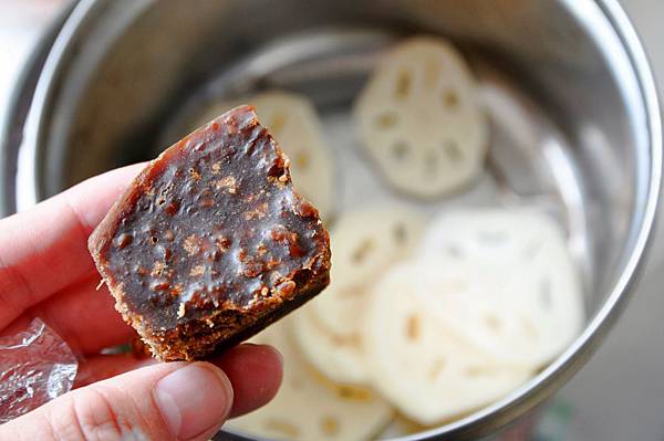 2. 將藕片放入內鍋,並放入老薑母糖,以及適量水份。