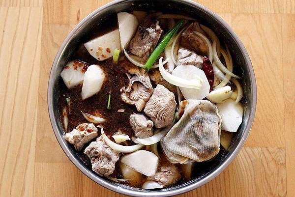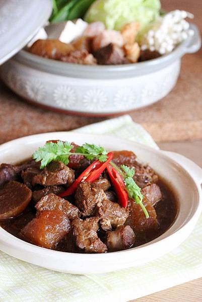 鄰近我老家的小鎮-溪湖,最富盛名的食物就是羊肉爐,這也是我們每到冬季必吃的料理。羊肉除了是很好的溫補食材之外,不管用中藥或是薑絲熬製的湯頭吃了都有補氣暖身的功效。這次我先把羊肉加入中藥和沙茶一起燉煮成羊肉煲,第一餐當主食,第二餐再加入高湯拿來煮火鍋,兩種吃法都讓人超級滿足 ♥