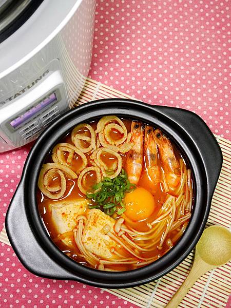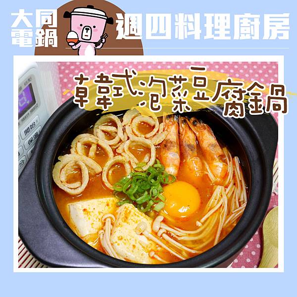 這次是使用大同智慧AI電鍋煮出韓式泡菜豆腐鍋,智慧AI電鍋沿用大同電鍋特殊間接加熱技術,但與傳統電鍋相比,進化成兩段式火力加熱及消費者最常使用的七種智慧烹調模式-飯(精煮)、飯(快煮)、煲湯、糕點、加熱(蒸煮)、湯粥、燉煮,這次暖呼呼的韓式泡菜豆腐鍋是用湯粥模式,採用2段式火力調節,先大火煮滾,再用小火慢燉10分鐘,最後大火收乾水分,煮出的食物口感更加濃郁可口!