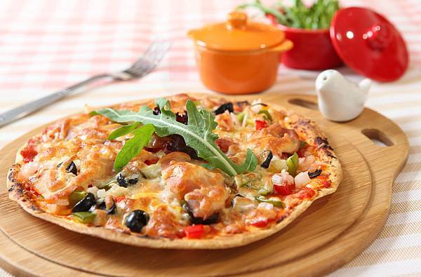 2.烤箱200℃預熱5分鐘,放入pizza烤箱設定200℃烤8分鐘即可上桌。