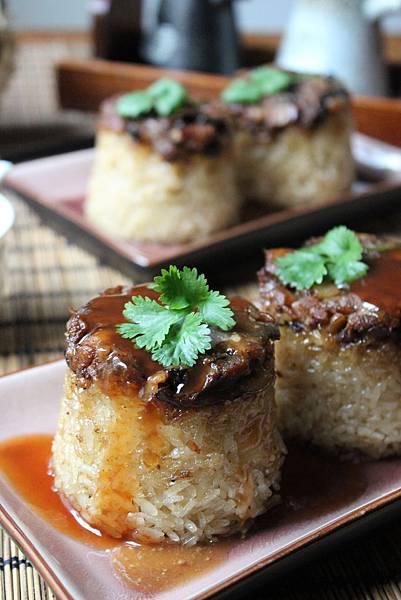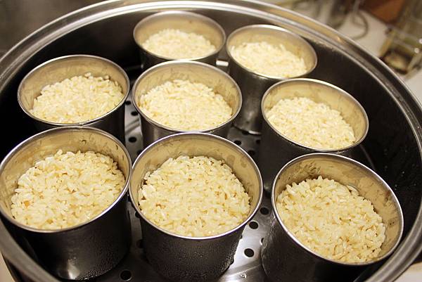 4.將炒過的糯米放入鋪有餡料的筒仔中,接著放入蒸籠中大火蒸20-30分鐘即可。