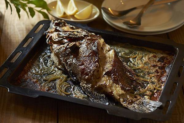 3.使用強蒸烤功能上管200℃/下管200℃/10分鐘後,撒上鹽適量再使用烘烤功能上管200℃/下管200℃/10分鐘後; 將魚翻面並撒上鹽利用烘烤功能上管200℃/下管200℃/10分鐘後,即可上桌享用。