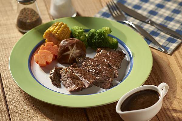 2.使用強蒸烤功能上管180℃/下管180℃/5分鐘後,利用烘烤功能上管200℃/下管200℃/5分鐘,熟成約五分熟(烘烤時間大約可以決定牛排熟度)
