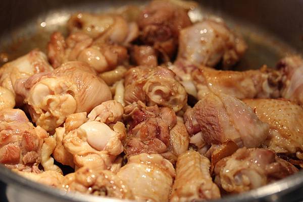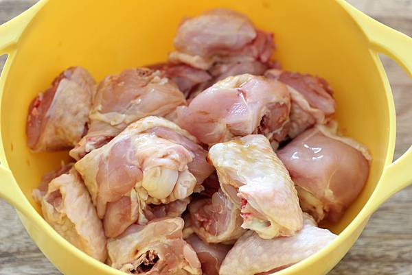 1.將雞腿切成適當大小的塊狀後,用醃料醃至少半小時。