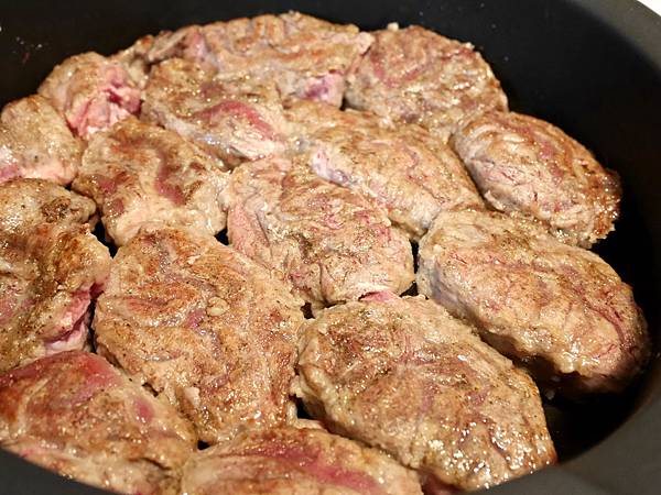 3.取一鍋,先冷鍋小火融化奶油,再放進牛肉以中火煎至焦香。(約8分鐘)