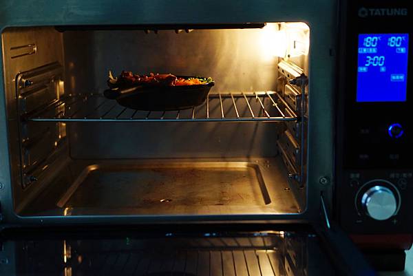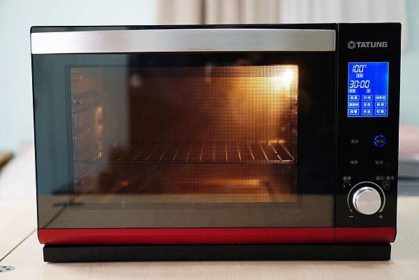 1.大同全功能蒸烤箱外型時尚,全內外側都是採用食品級304不銹鋼,還有雙層超強化玻璃面板,內鍵9種烹調模式,這次使用的是「強蒸烤」,二次加熱技術低氧烹調,抑制食物氧化。