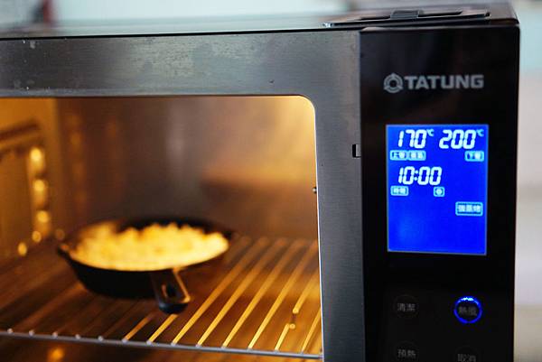 6.放進烤箱最下層,選擇「強蒸烤」,設定(上管170℃/下管200℃/10分鐘),按下「確定」開始啟動。