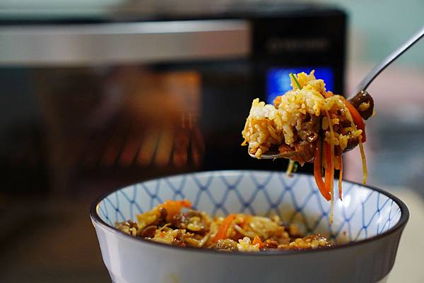 不用爐火也能完成喔,大同全功能蒸烤箱「強蒸烤」,讓米粒有如鍋巴不過焦不過硬,反而香脆可口,輕鬆就可料理喔!