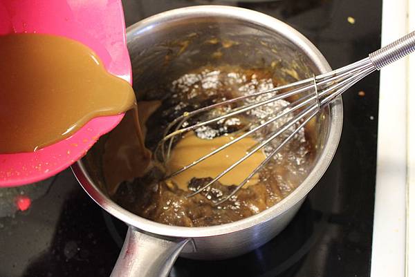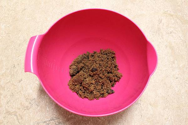 1.將黑糖裝入一小砵中,接著與80g的水攪拌成黑糖水。