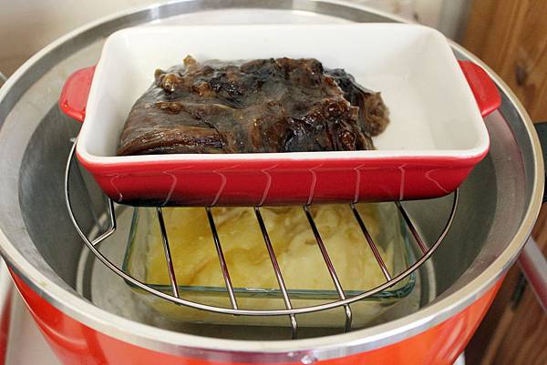 5.放入大同電鍋裡,外鍋一杯水,按下電源蒸熟即可(裝粉粿的容器不能直接接觸電鍋鍋底,不然會燒焦)►電鍋作粉粿香Q又彈牙