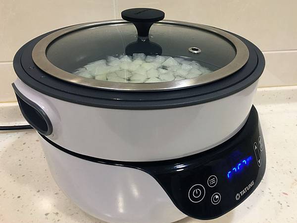 6.透過玻璃鍋蓋可觀察鍋裡烹煮情況,自動煮『粥湯』模式大概是60分鐘左右會完成。