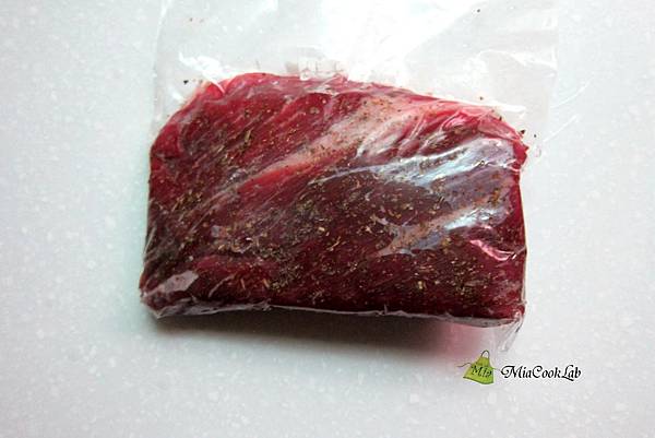 1.新鮮冷藏牛肉均勻抹上鹽及香草。