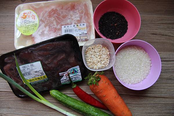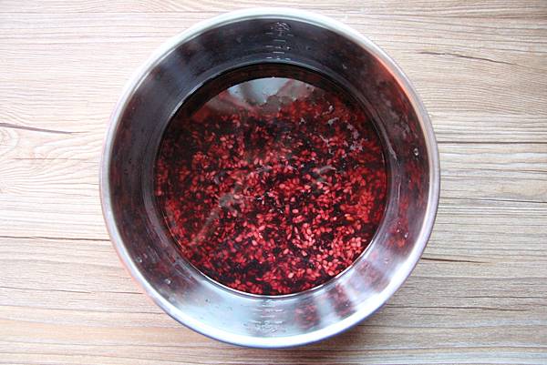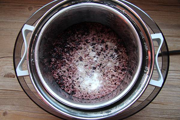 3.將白米和紫米加入1又1/4的水浸泡2小時後,加入燕麥混合