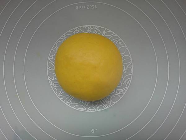 3.將麵糰分成2份,一份稍大,一份稍小,較小的麵糰加入南瓜粉調色
