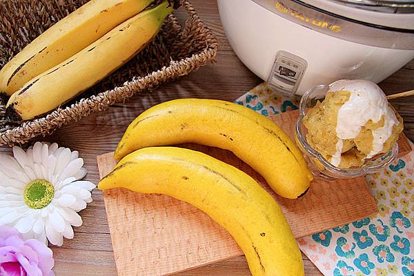超級仿真的香蕉饅頭,和真的香蕉放一起讓人傻傻分不清楚XD每次蒸饅頭最怕的就是成品變得坑坑疤疤,使用大同星球電鍋來蒸饅頭,透明鍋蓋設計讓人一目了然,饅頭在電鍋裡的變化完全掌控,就能清楚了解饅頭失敗的原因喔~順便還蒸了地瓜泥配饅頭,淋上煉乳或黑糖,像沙拉或甜點一樣,冰冰熱熱都好吃^^