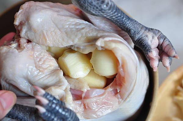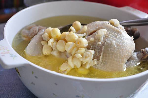 最近又是蓮子的盛產季節,除了燉甜湯、四神湯、中藥燉補之外,拿來燉雞湯更可口,蓮子和百合無味燉煮後鬆軟,特別在雞肚中塞入大量蒜頭,在燉煮過程中,更有淡淡的蒜香氣味撲鼻,湯頭也清淡微甜兼具養生,非常適合全家人一起享用喔!