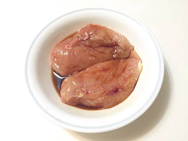 2.雞胸肉用醬汁醃十分鐘(也可以使用雞腿肉)。► 嚴選食材免出門送到家