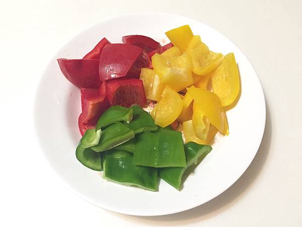 9.2分鐘後翻面,不時用筷子翻動以免烤焦,至彩椒稍微 軟熟即可起鍋。