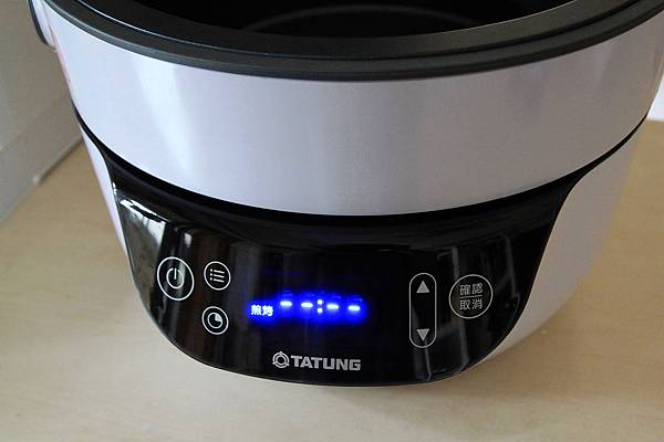 3.點選智慧型觸控面板,選擇『加熱』模式。 《大同複合料理無水鍋》共有四種烹調模式,加熱、煎烤、粥湯、蛋糕模式。還有5段加熱設定及8段煎烤溫度、預約及定時的功能。 ► 熱銷大同無水鍋