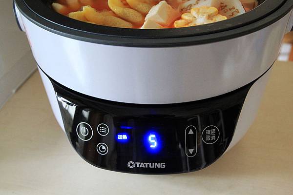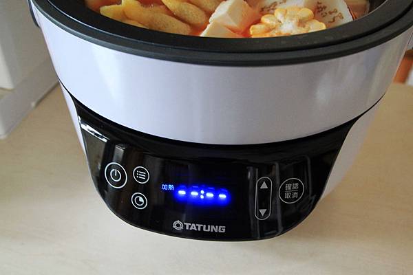 10.可以準備吃火鍋囉!點選智慧型觸控面板,選擇『加熱』模式,將所有食材依序下鍋烹煮。