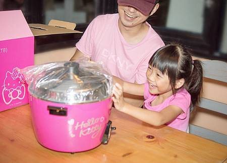 因為這次限量版HELLO KITTY也有加贈一個等比縮小的置物盒電鍋,所以喬喬就跟喬爸開心的玩起辦