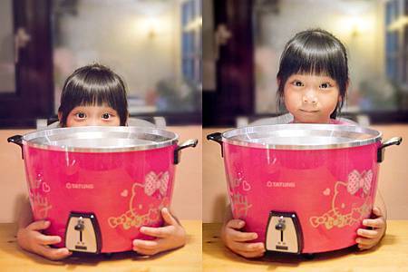 輕鬆拿小電鍋的喬喬vs奮力抱起大電鍋的喬喬