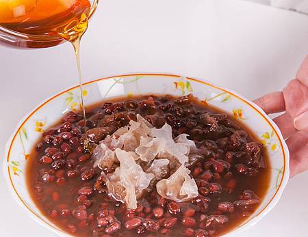 紅豆300g、白木耳30g、紅砂糖200g、水2400cc、蜂蜜適量