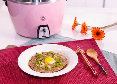 而後電鍋外鍋加1杯水,將平盤放入蒸煮