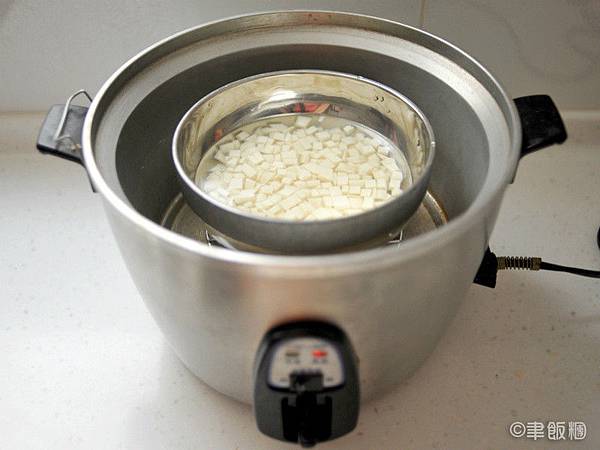 ※家裡沒有蒸籠,所以大同電鍋內是放一個瓷碗公,直接把架子放碗公上。