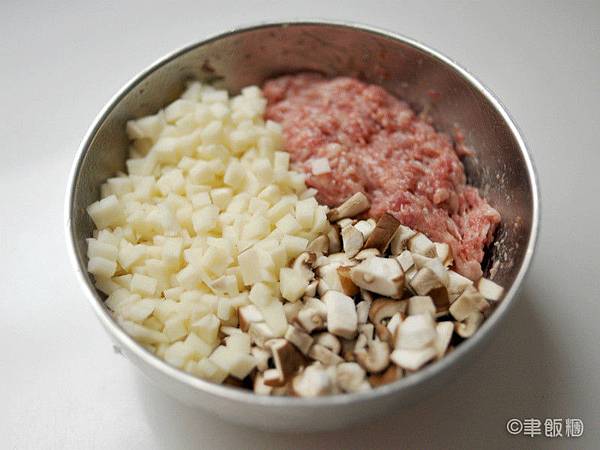 ※筍子丁必須放涼才可以加入豬肉餡料裡,不然冷熱食物接觸很容易臭酸。