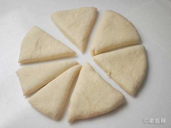 4.取出後用桿麵棍壓出空氣,切成六等份(其中一等份又被我切成2等份,做小貓熊),