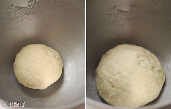 ↓ 麵糰發酵照,右:剛揉好,左:發酵完成(變1-2倍大)